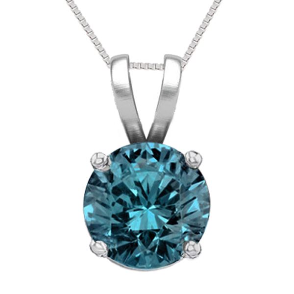 REF-186X8F ---- WJ13323 ----- Manufacturer's Suggested Retail Price: $9000.00 ----- 14K White Gold Jewelry 1.03 ct Blue Diamond Solitaire Necklace ----- Diamond: 1 Round cut @ 1.0 ct