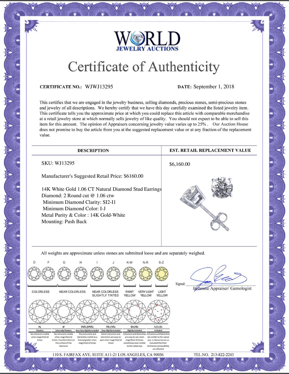 REF-141G9M - SKU: WJ13295 ---- 14K White Gold 1.06 ctw Natural Diamond Stud Earrings