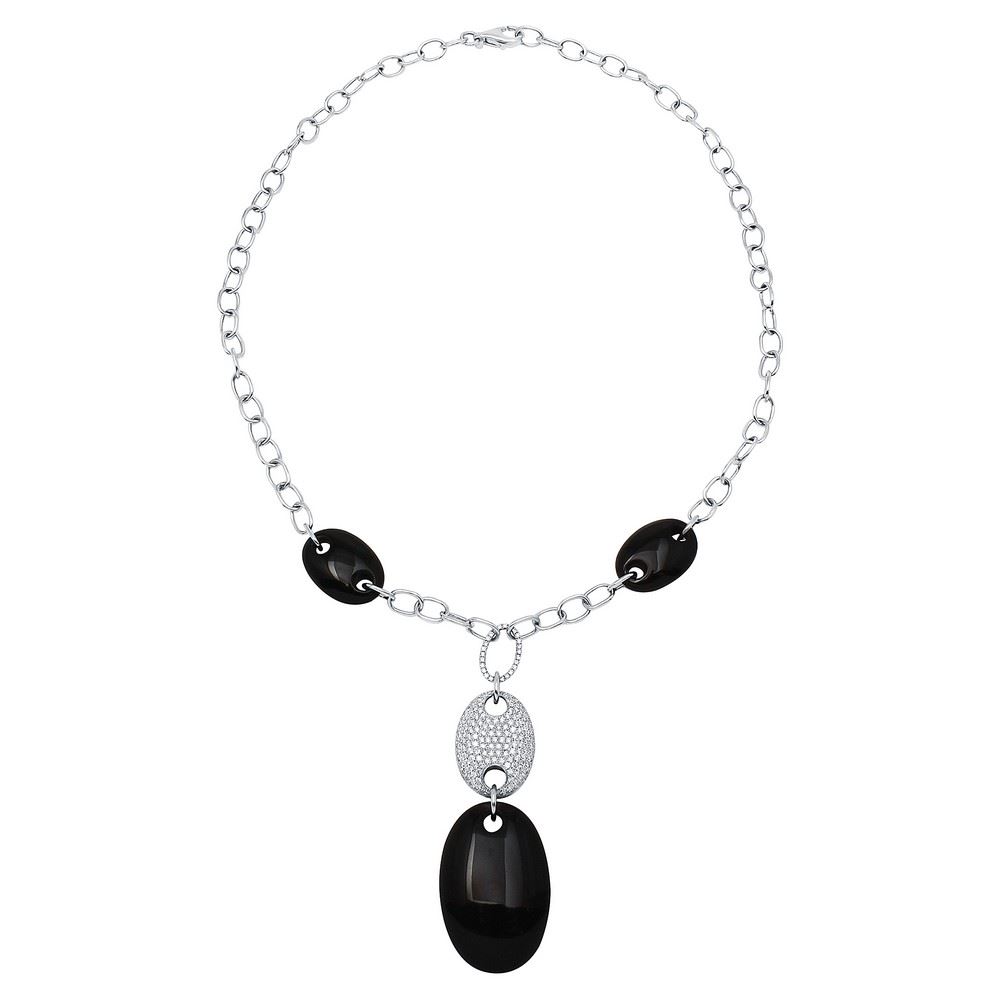 REF-199K2R ---- 14K White Gold 1.31CTW Onyx Necklaces