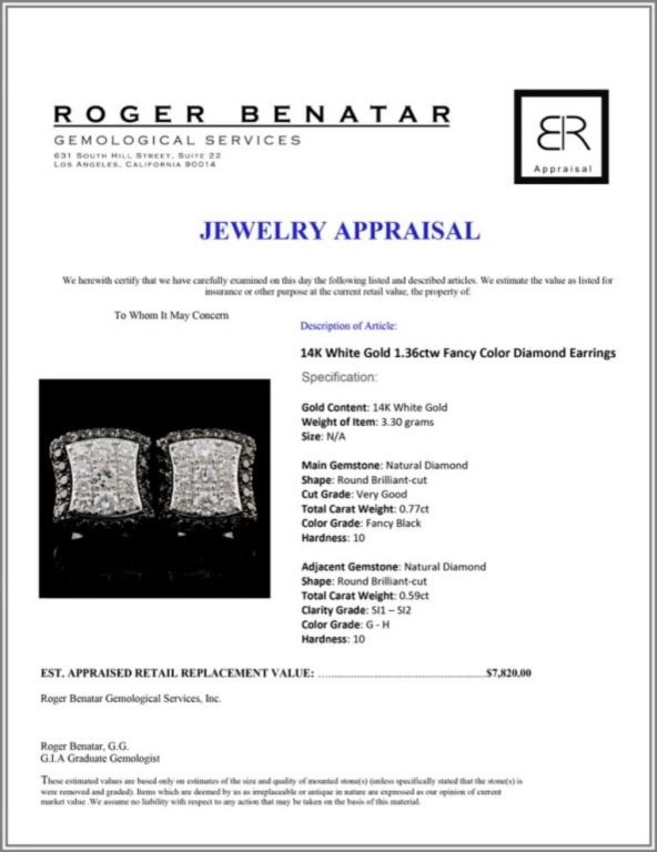 Regarding Appraised Jewelry and Loose Stones - Auctionfarm sends them out to a third party for Retail Replacement Value Appraisals, which are the most common. These types of evaluations are written for insurance needs. This would be the cost to replace the jewelry with an item of equal quality and kind, considered to be the current market price or the replacement value. This type of appraisal is done to protect you in the event of damage or loss of a valuable item. Our appraisals are conducted by independent 3rd Party appraisal firms that utilizes Certified GIA Gemologist. Appraisals should be used for verification of gemstone and/or metal weight, size, and grade only, not actual value. Appraisal value should be considered for insurance purposes only, not actual value, as price varies greatly from retail locations thru out the world. Items should not be purchased with the expectation to resell for appraisal price, or for profit.