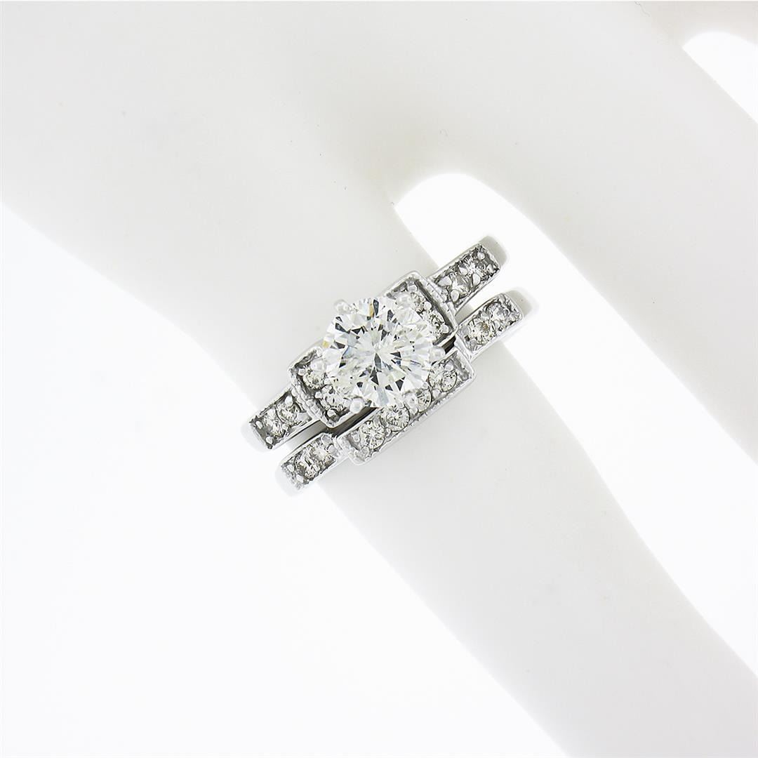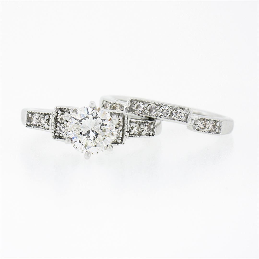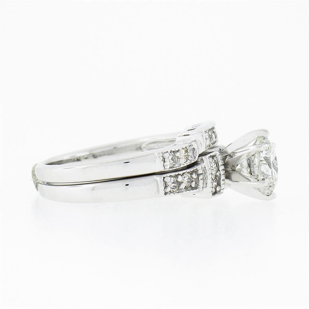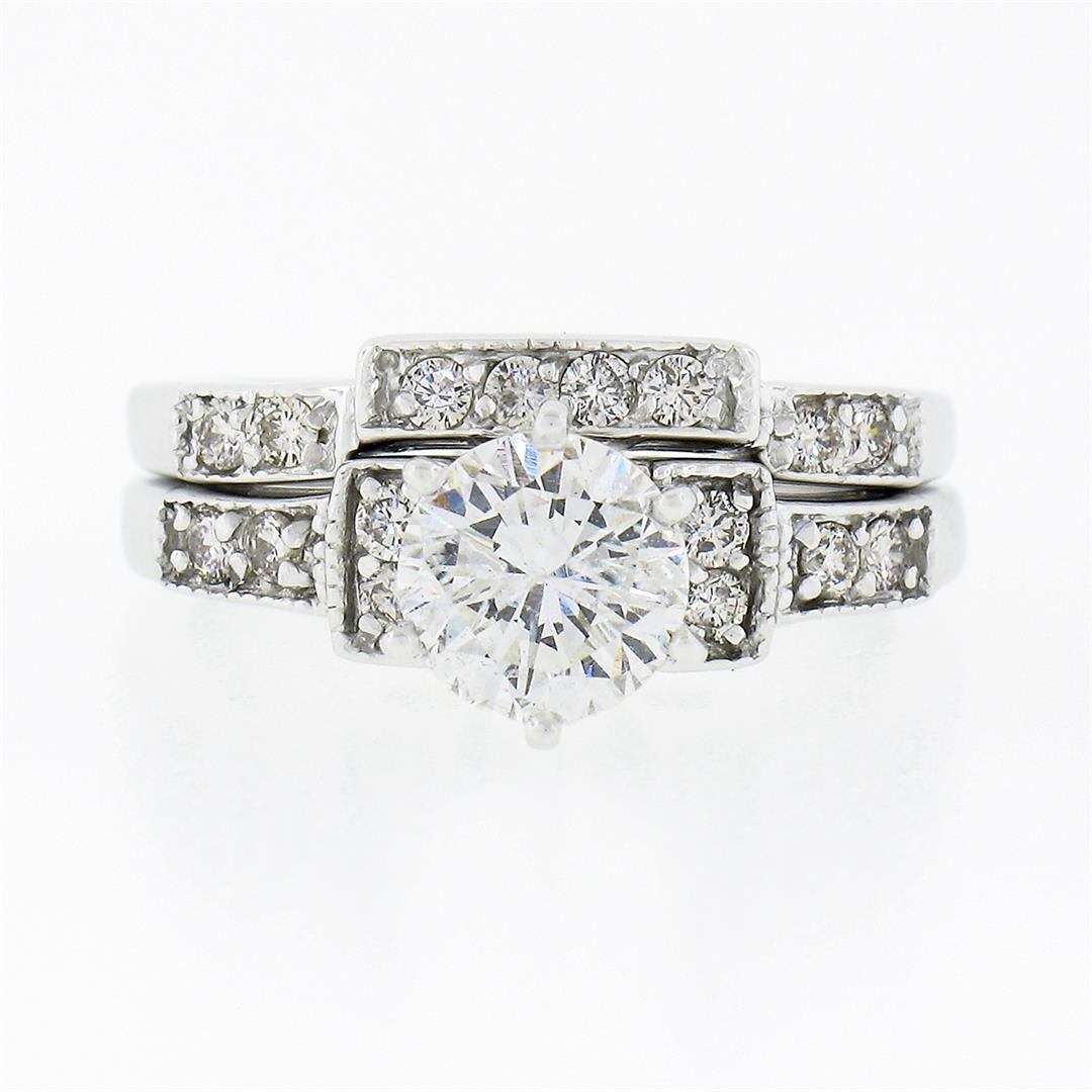 14K White Gold 1.38 ctw Round 6 Prong Diamond Engagement Ring Matching Band Set