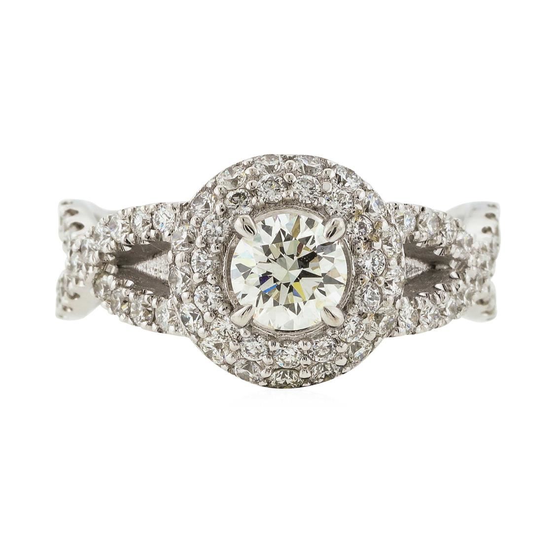 One 14K White Gold 1.49ctw Diamond Ring with a total weight of 4.9 grams. Center diamond has a weight of 0.53cts with a color of (K) and clarity of (VS-1). Side diamonds have a total weight of 0.96cts. IGI Appraised.