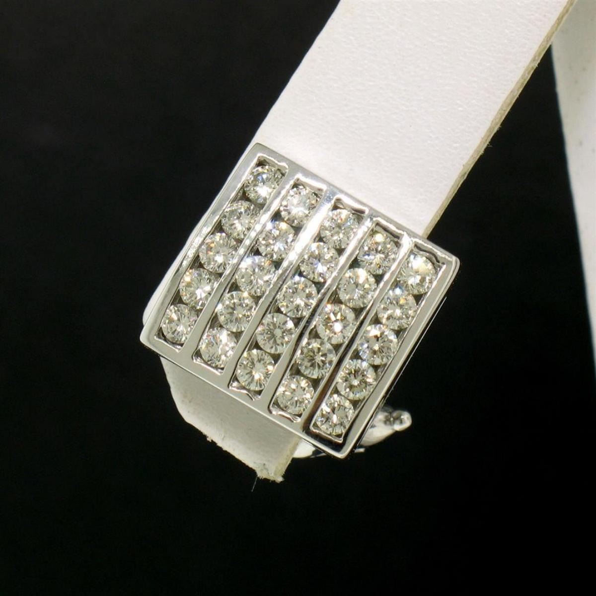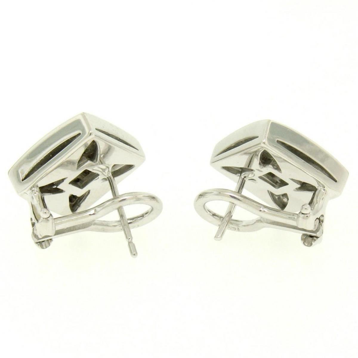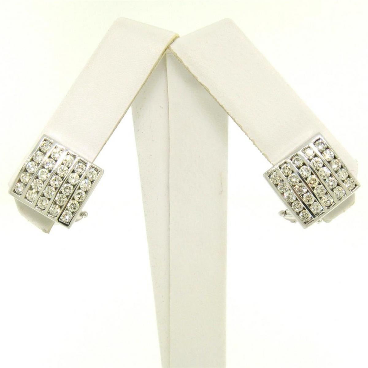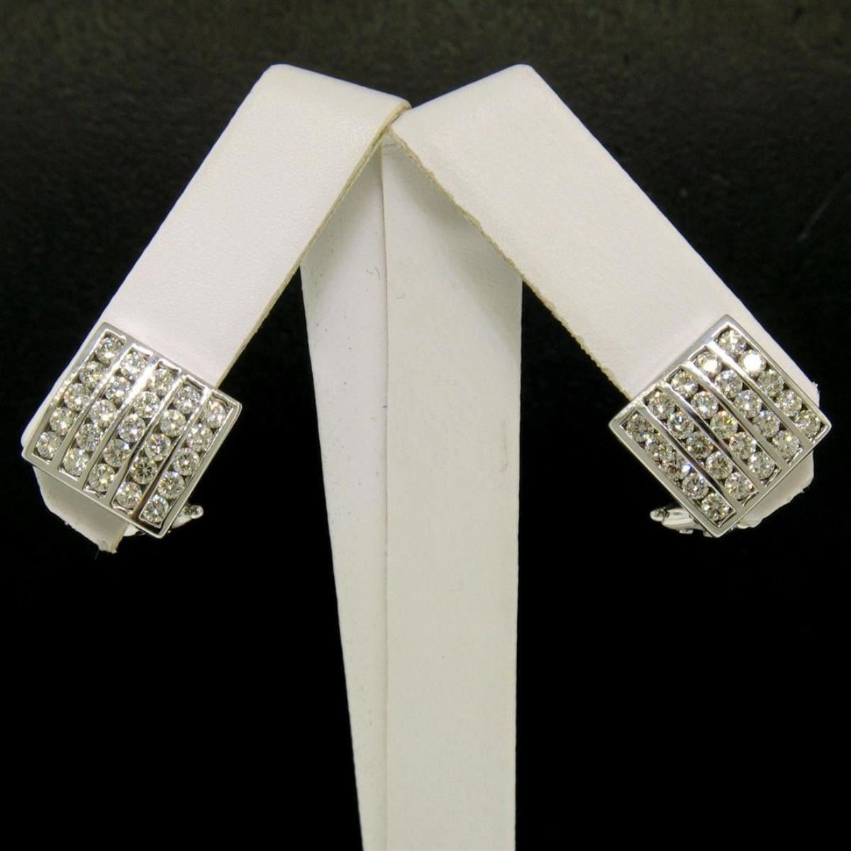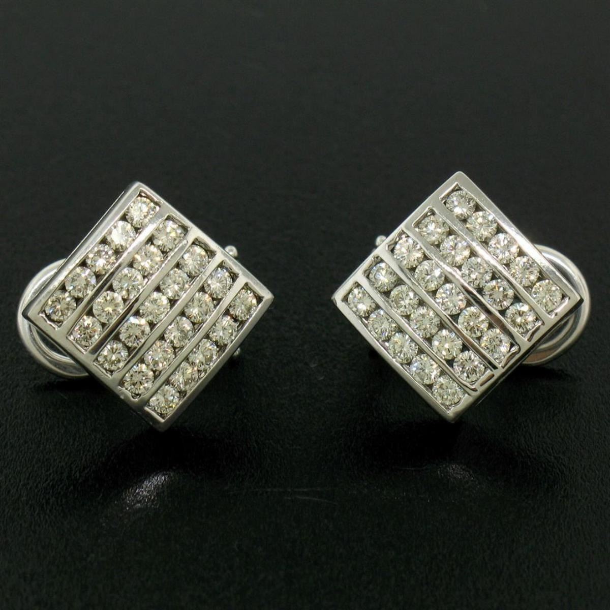 One Pair 14K White Gold 1.50 ctw 50 Round Diamond Square Multi Channel Omega Back Earrings. Item Details: Material: 14K Solid White Gold, Weight: 8.8 Grams, Stone(s): (50) Natural Genuine Diamonds - Round Brilliant Cut - G/H Color - VS1/VS2 Clarity - Multi Channel Set, Total Carat Weight: 1.50 (approx.), Backing: Post Backs w/ Omega Closures, Width: 15.5mm, Height: 15.5mm, Thickness: 4.8mm Condition: Like New!