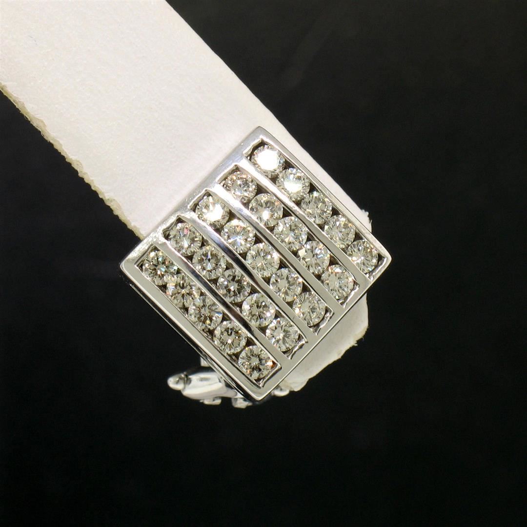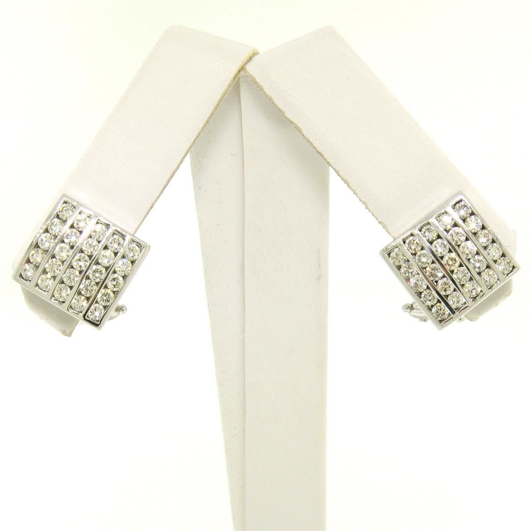 An estate pair of earrings in solid 14k white gold with 50 round brilliant cut natural diamonds (G/H - VS1/VS2; 1.50ctw). The earrings measure approximately 15.5x15.5mm and weigh a total of 8.8 grams.