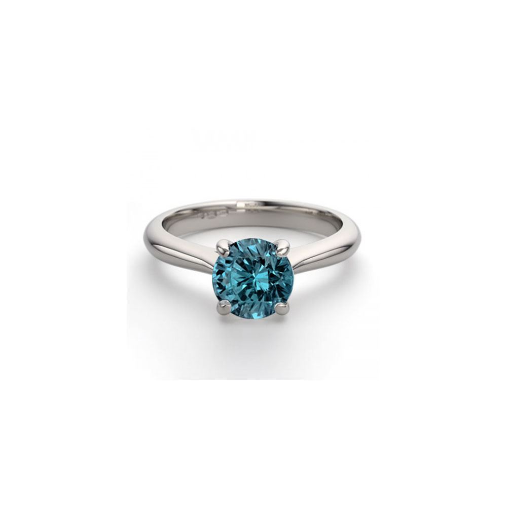 14K White Gold Jewelry 1.52 ctw Blue Diamond Solitaire Ring