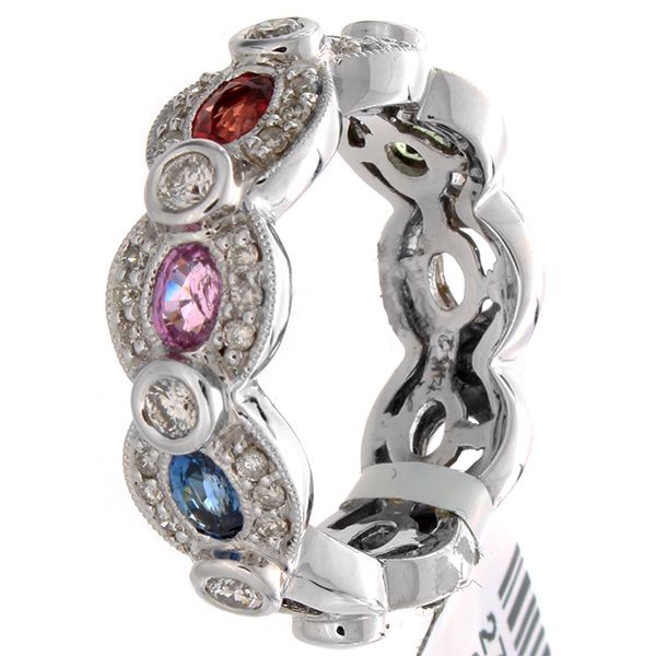 14K White Gold 1.68ctw Fancy Sapphire & Diamond Ring **|**|** 14K White Gold 1.68ctw Fancy Sapphire & Diamond Ring --- 36 Diamonds @0.5CT --- 5 Fancy Sapphire @1.18CT --- Metal: 14K White Gold --- SKU#277339 *** ; MSRP: $3700