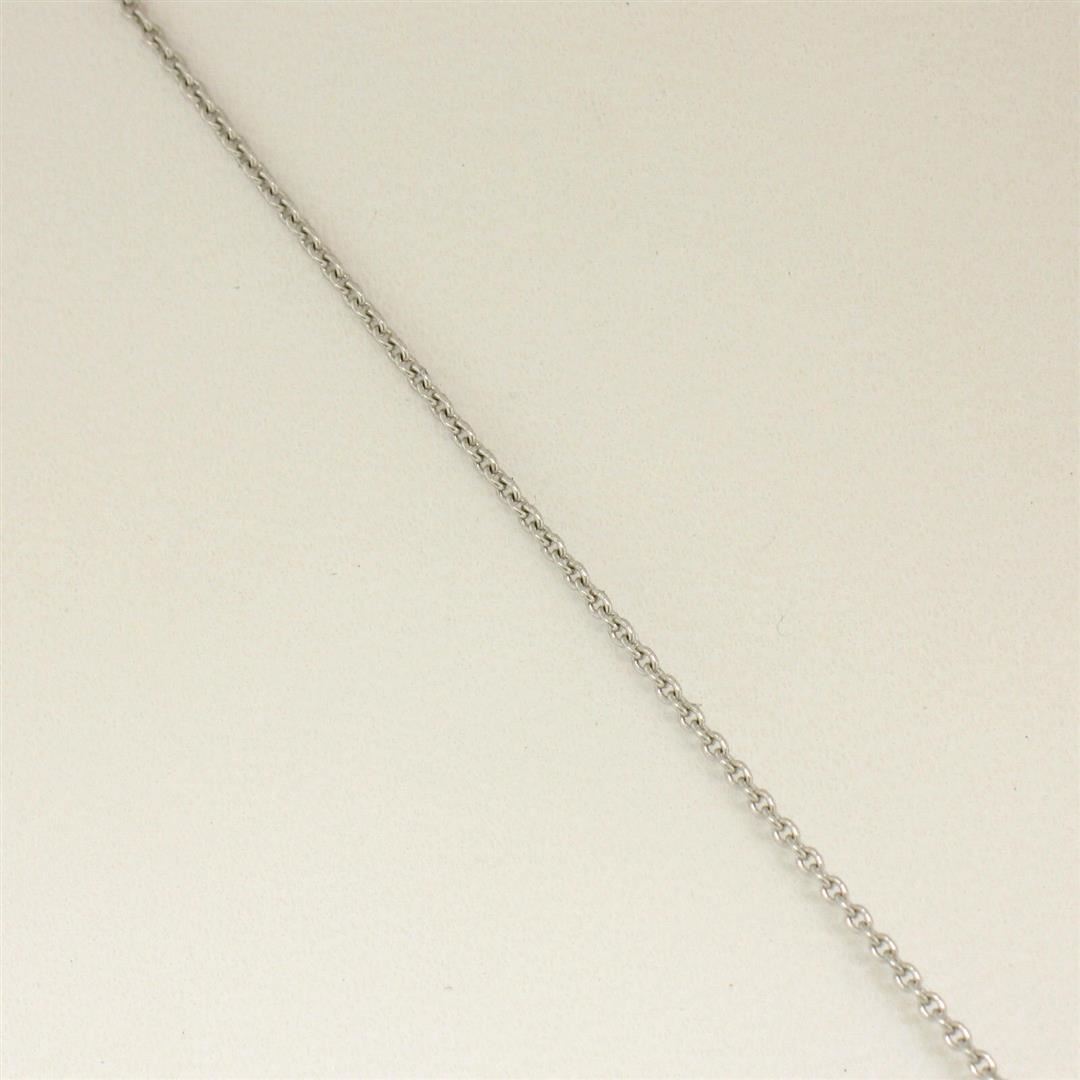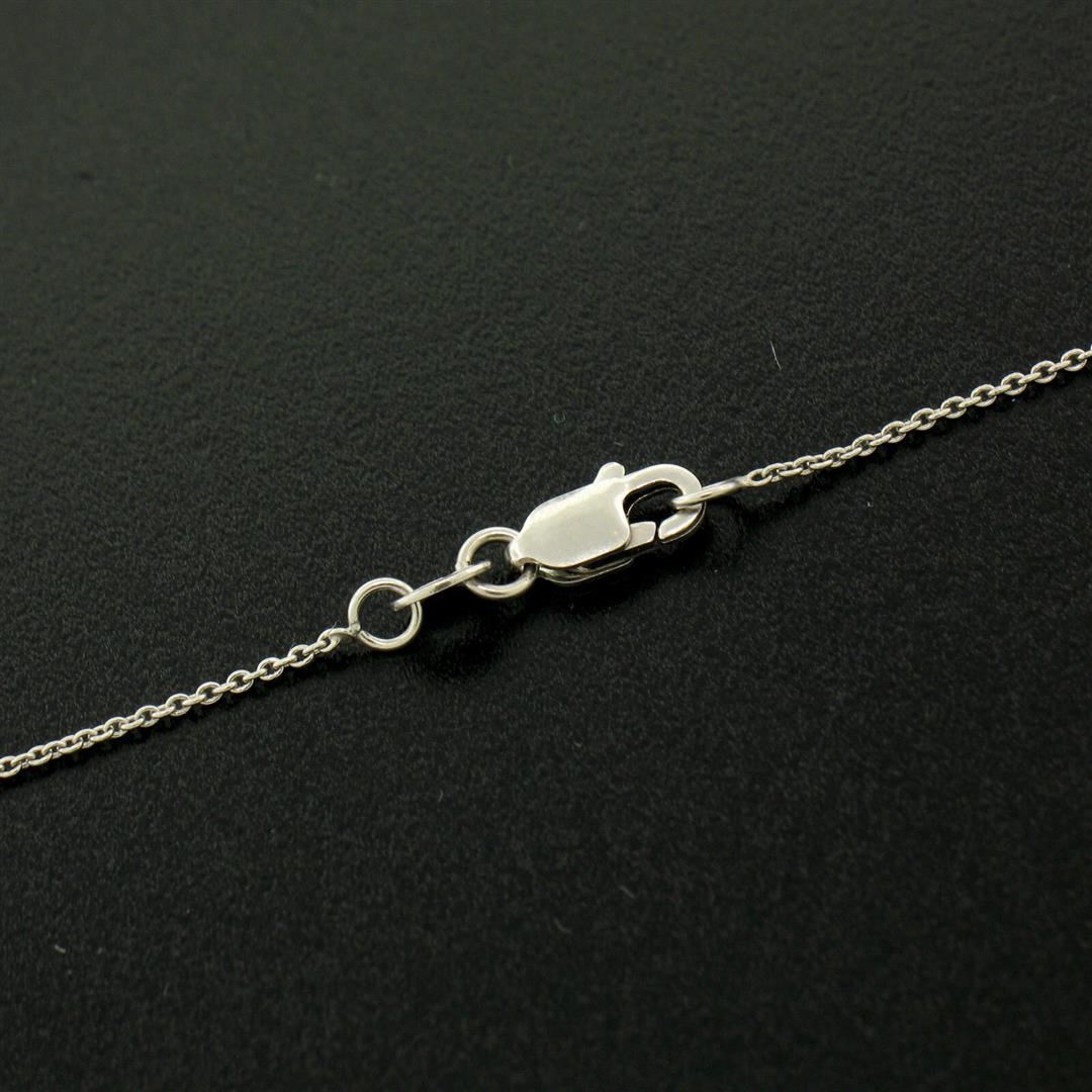A new solid 14k white gold pendant necklace, with 25 round brilliant cut natural diamonds (G/H- VS2/SI1; 0.18ctw). 16 inch cable link chain, 3.8 grams total weight, pendant measures 21x14.8mm.