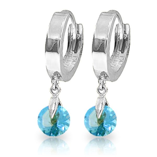 14K. SOLID GOLD HOOP EARRING WITH NATURAL BLUE TOPAZ