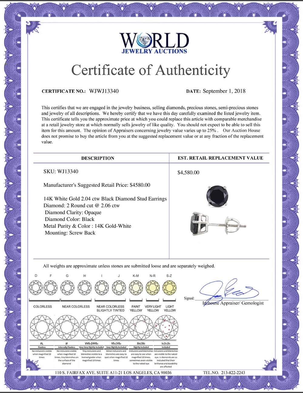14K White Gold Jewelry 2.06 ctw Black Diamond Stud Earrings