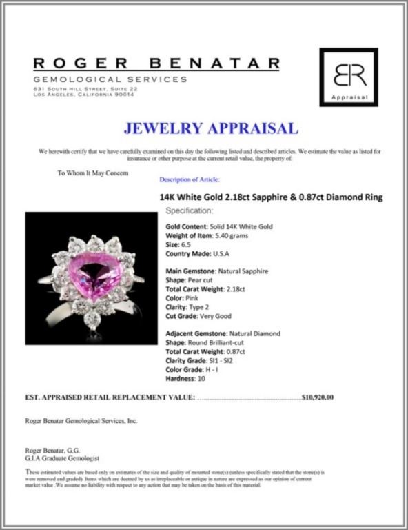 Regarding Appraised Jewelry and Loose Stones - Auctionfarm sends them out to a third party for Retail Replacement Value Appraisals, which are the most common. These types of evaluations are written for insurance needs. This would be the cost to replace the jewelry with an item of equal quality and kind, considered to be the current market price or the replacement value. This type of appraisal is done to protect you in the event of damage or loss of a valuable item. Our appraisals are conducted by independent 3rd Party appraisal firms that utilizes Certified GIA Gemologist. Appraisals should be used for verification of gemstone and/or metal weight, size, and grade only, not actual value. Appraisal value should be considered for insurance purposes only, not actual value, as price varies greatly from retail locations thru out the world. Items should not be purchased with the expectation to resell for appraisal price, or for profit.