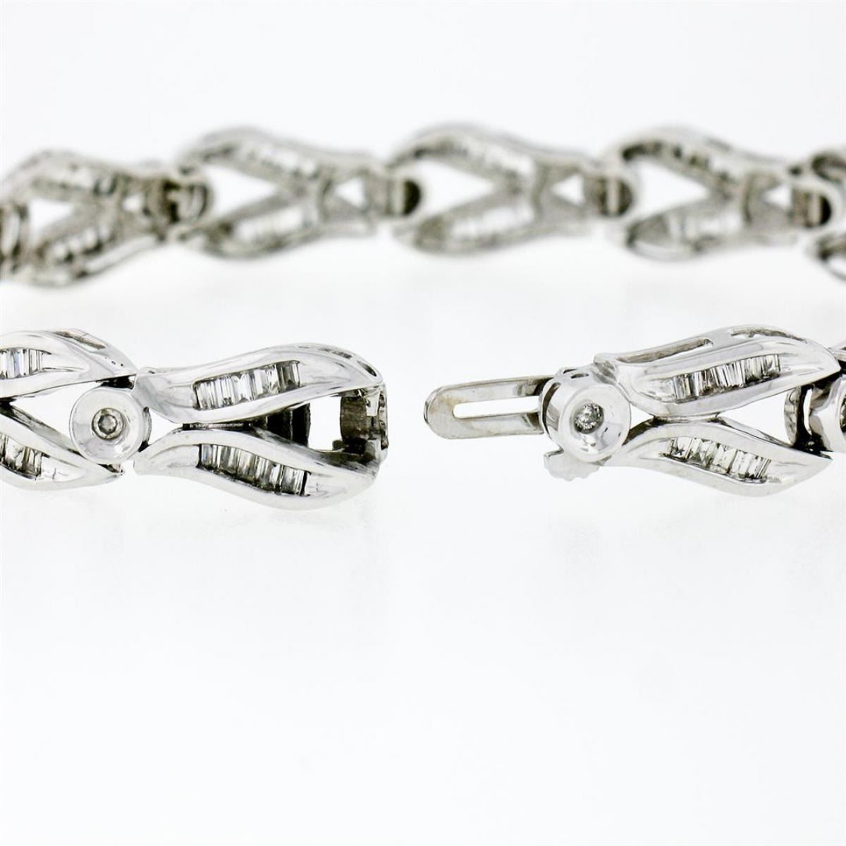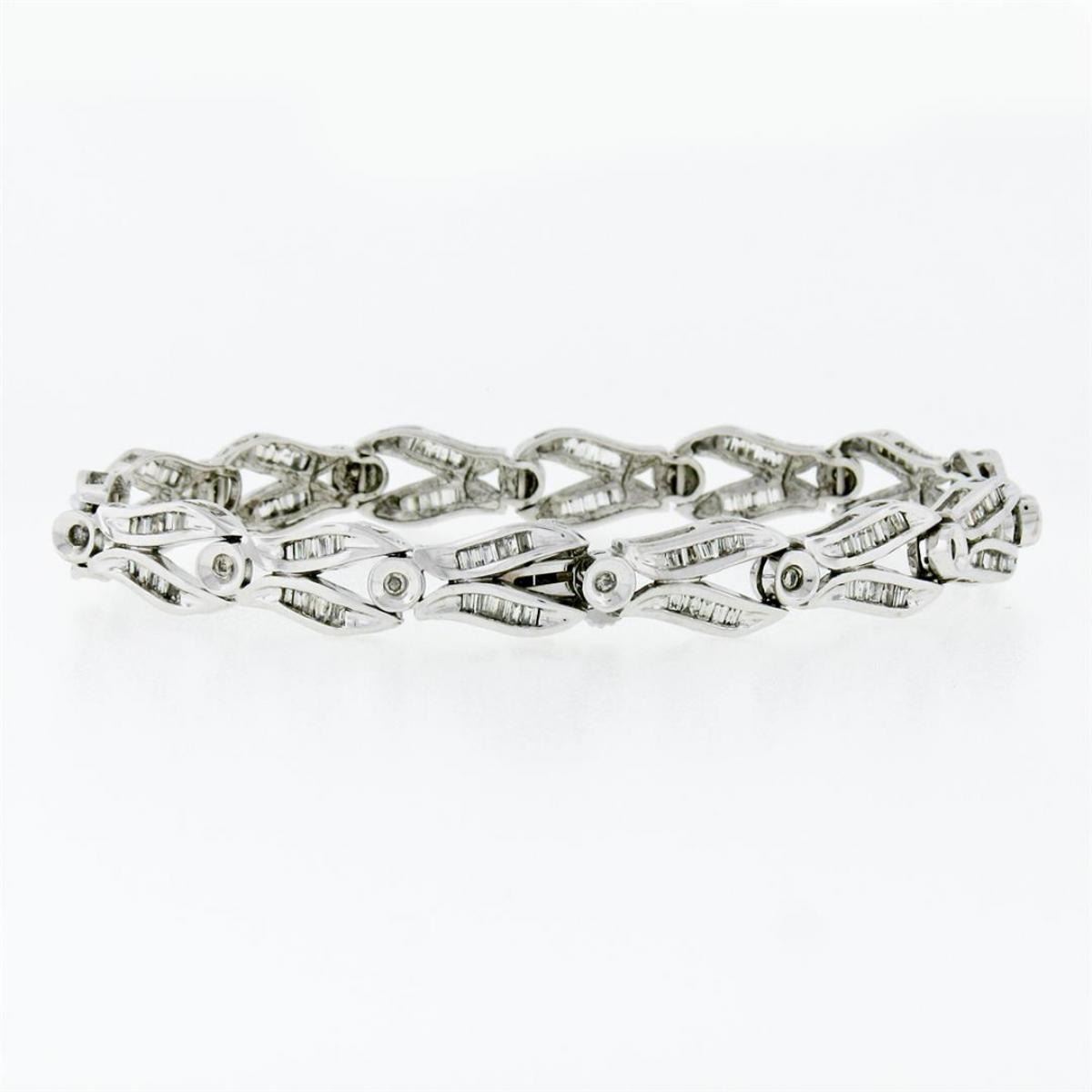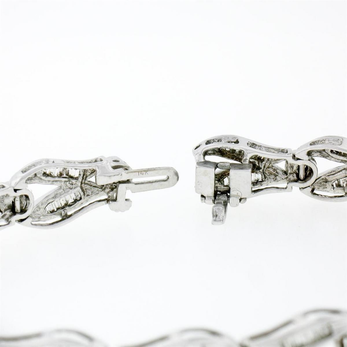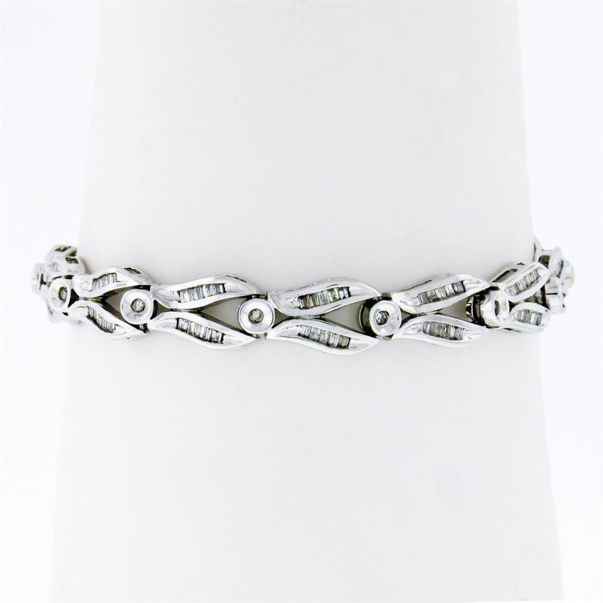 One 14K White Gold 2.25ctw Baguette & Round Diamond Split Open Link Tennis Bracelet. Item Details: Material: 14K Solid White Gold, Weight: 16.77 Grams, Stone(s): (140) Natural Genuine Diamonds - Straight & Tapered Baguette Cut - Channel Set - SI2/I1 Clarity - I/J Color - 1.90ctw (approx.), (14) Natural Genuine Diamonds - Round Brilliant Cut - Bezel Set - SI2/I1 Clarity - I/J Color - 0.35ctw (approx.), Total Carat Weight: 2.25 (exact), Chain Type: Unique Split Link w/ Round, Bezel Stations, Chain Length: Fits up to 7 1/4 inch wrist, Clasp: Push clasp w/ fold under safety latch, Width: 8.30mm, Thickness: 3.50mm rise off the wrist, Condition: Like New!
