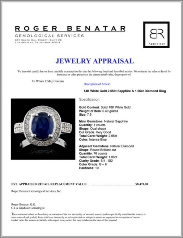 Regarding Appraised Jewelry and Loose Stones - Auctionfarm sends them out to a third party for Retail Replacement Value Appraisals, which are the most common. These types of evaluations are written for insurance needs. This would be the cost to replace the jewelry with an item of equal quality and kind, considered to be the current market price or the replacement value. This type of appraisal is done to protect you in the event of damage or loss of a valuable item. Our appraisals are conducted by independent 3rd Party appraisal firms that utilizes Certified GIA Gemologist. Appraisals should be used for verification of gemstone and/or metal weight, size, and grade only, not actual value. Appraisal value should be considered for insurance purposes only, not actual value, as price varies greatly from retail locations thru out the world. Items should not be purchased with the expectation to resell for appraisal price, or for profit.