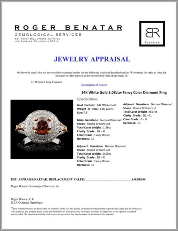 Regarding Appraised Jewelry and Loose Stones - Auctionfarm sends them out to a third party for Retail Replacement Value Appraisals, which are the most common. These types of evaluations are written for insurance needs. This would be the cost to replace the jewelry with an item of equal quality and kind, considered to be the current market price or the replacement value. This type of appraisal is done to protect you in the event of damage or loss of a valuable item. Our appraisals are conducted by independent 3rd Party appraisal firms that utilizes Certified GIA Gemologist. Appraisals should be used for verification of gemstone and/or metal weight, size, and grade only, not actual value. Appraisal value should be considered for insurance purposes only, not actual value, as price varies greatly from retail locations thru out the world. Items should not be purchased with the expectation to resell for appraisal price, or for profit.