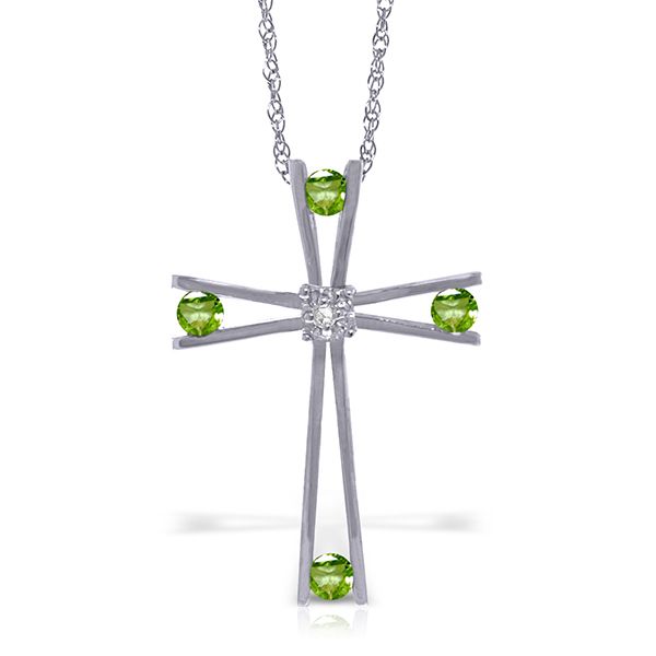 14K. SOLID GOLD CROSS WITH NATURAL DIAMOND & PERIDOTS