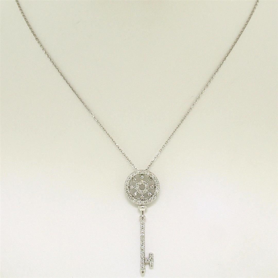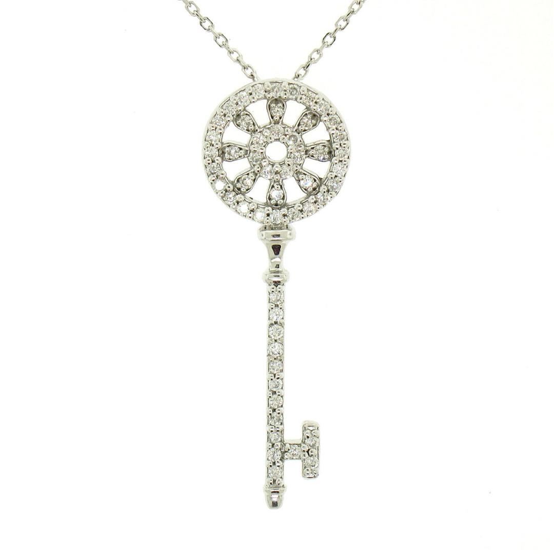 One FINE 14K White Gold .45ct Round Brilliant Diamond Ship Wheel Key Slide Pendant w/ 16" Chain. Item Details: Material: 14K Solid White Gold, Weight: 4.07 Grams, Stone(s): (53) Natural Genuine Diamonds - Round Brilliant Cut - Prong Set - VS2 Clarity - G Color, Total Carat Weight: 0.45 (approx.), Chain Type: Diamond Cut Cable Link, Chain Length: 16 Inches, Clasp: Lobster Claw, Overall Width: 12.30mm Height: 35.85mm Thickness: 3.05mm Condition: Like New!
