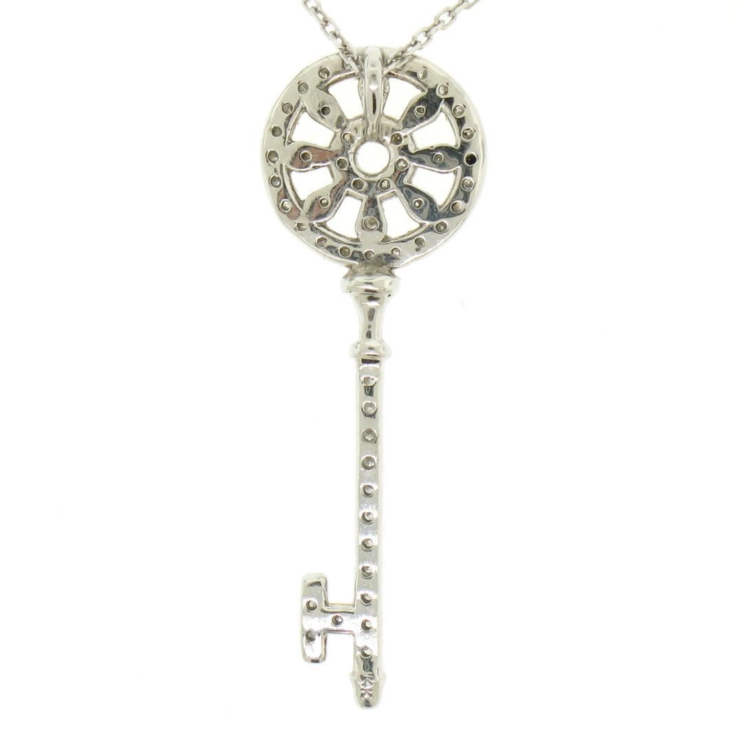 One FINE 14K White Gold .45ct Round Brilliant Diamond Ship Wheel Key Slide Pendant w/ 16" Chain. Item Details: Material: 14K Solid White Gold, Weight: 4.07 Grams, Stone(s): (53) Natural Genuine Diamonds - Round Brilliant Cut - Prong Set - VS2 Clarity - G Color, Total Carat Weight: 0.45 (approx.), Chain Type: Diamond Cut Cable Link, Chain Length: 16 Inches, Clasp: Lobster Claw, Overall Width: 12.30mm Height: 35.85mm Thickness: 3.05mm Condition: Like New!