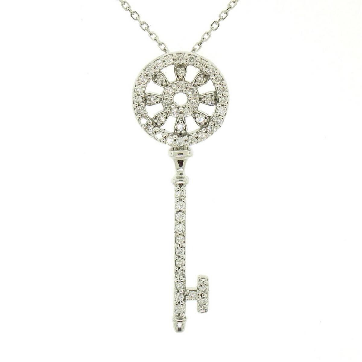 One FINE 14K White Gold .45ct Round Brilliant Diamond Ship Wheel Key Slide Pendant w/ 16" Chain. Item Details: Material: 14K Solid White Gold, Weight: 4.07 Grams, Stone(s): (53) Natural Genuine Diamonds - Round Brilliant Cut - Prong Set - VS2 Clarity - G Color, Total Carat Weight: 0.45 (approx.), Chain Type: Diamond Cut Cable Link, Chain Length: 16 Inches, Clasp: Lobster Claw, Overall Width: 12.30mm Height: 35.85mm Thickness: 3.05mm Condition: Like New!