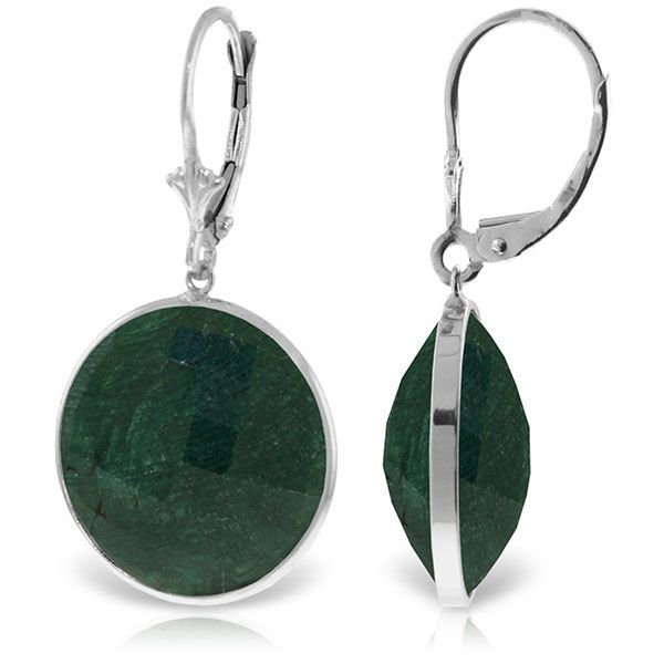 14K. GOLD LEVERBACK EARRING WITH CHECKERBOARD CUT ROUND EMERALD COLOR CORUNDUM