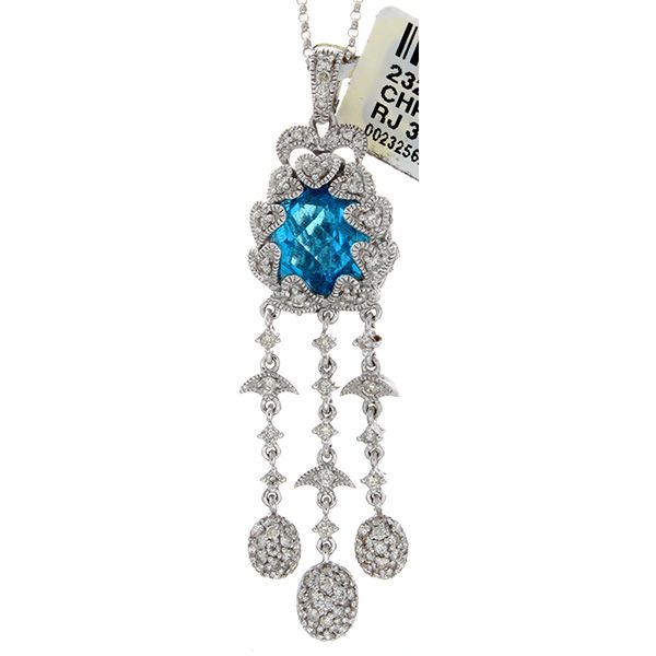 14K White Gold 5.95ctw Topaz & Diamond Pendant **|**|** 14K White Gold 5.95ctw Topaz & Diamond Pendant --- 87 Diamonds @1.05CT --- 1 Topaz @4.9CT --- Metal: 14K White Gold --- SKU#232562 *** ; MSRP: $6000