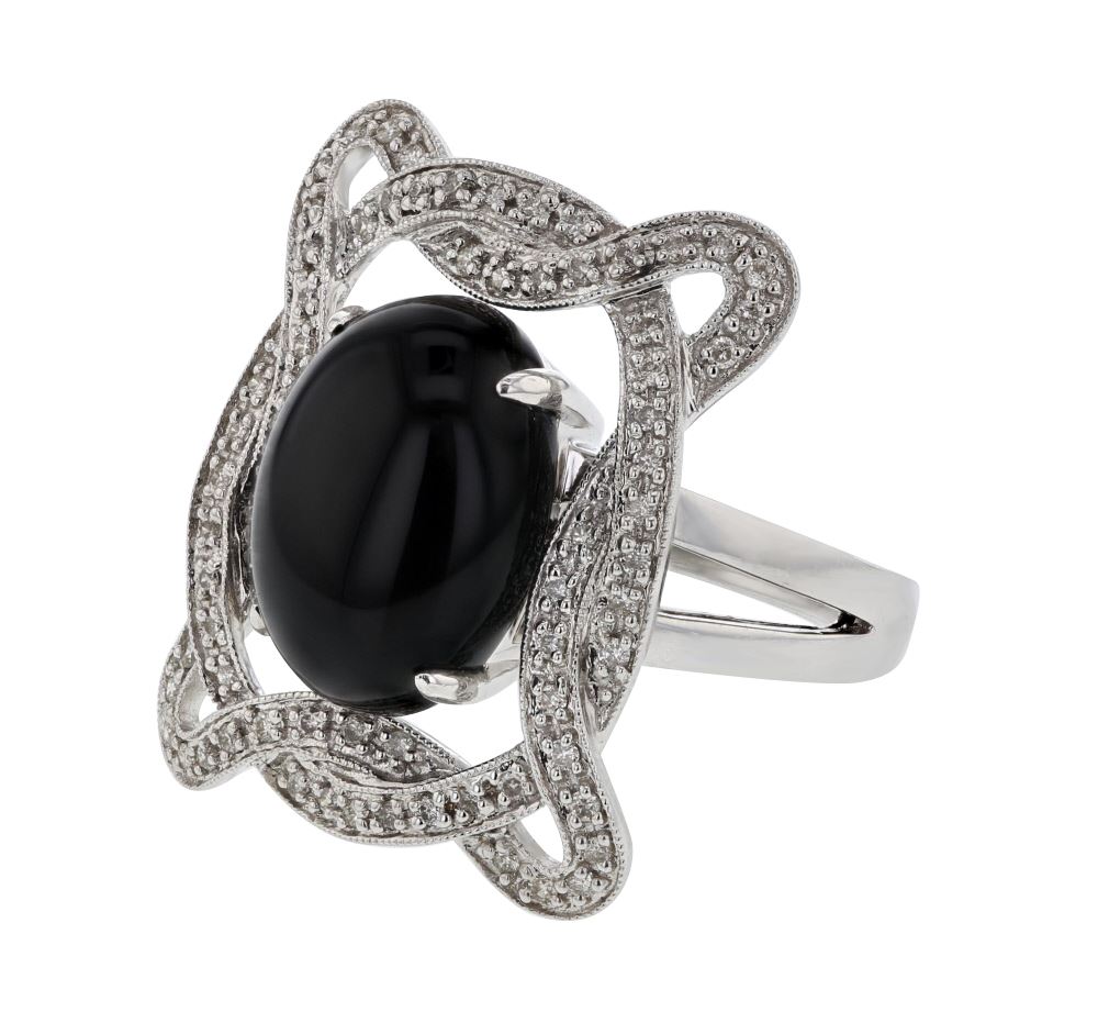 REF-79R9K ---- 14K White Gold 5.97CTW Onyx&Diamond Cocktail Ring