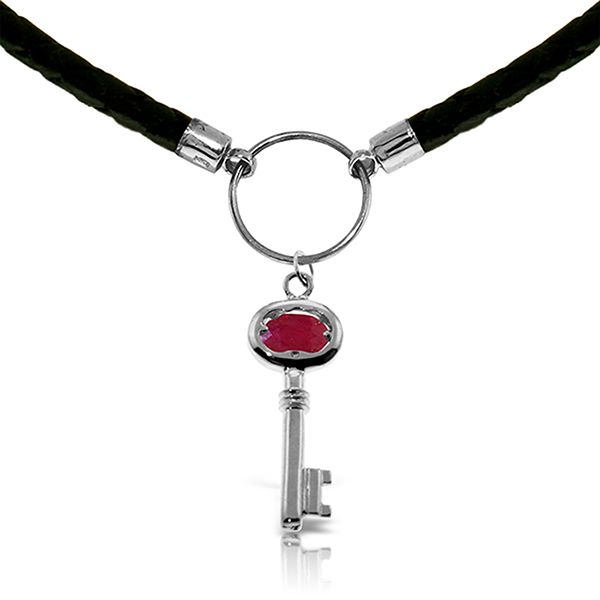 14K. SOLID GOLD & LEATHER KEY NECKLACE WITH RUBY