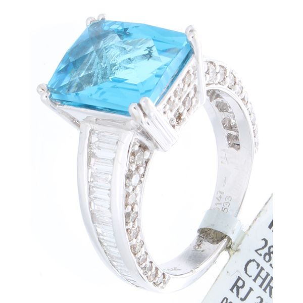 14K White Gold 6.80ctw Topaz & Diamond Ring **|**|** 14K White Gold 6.80ctw Topaz & Diamond Ring --- 79 Diamonds @1.47CT --- 1 Topaz @5.33CT --- Metal: 14K White Gold --- SKU#285216 *** ; MSRP: $7600