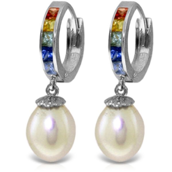 14K. HOOP EARRING WITH MULTI COLORS SAPPHIRES & PEARLS