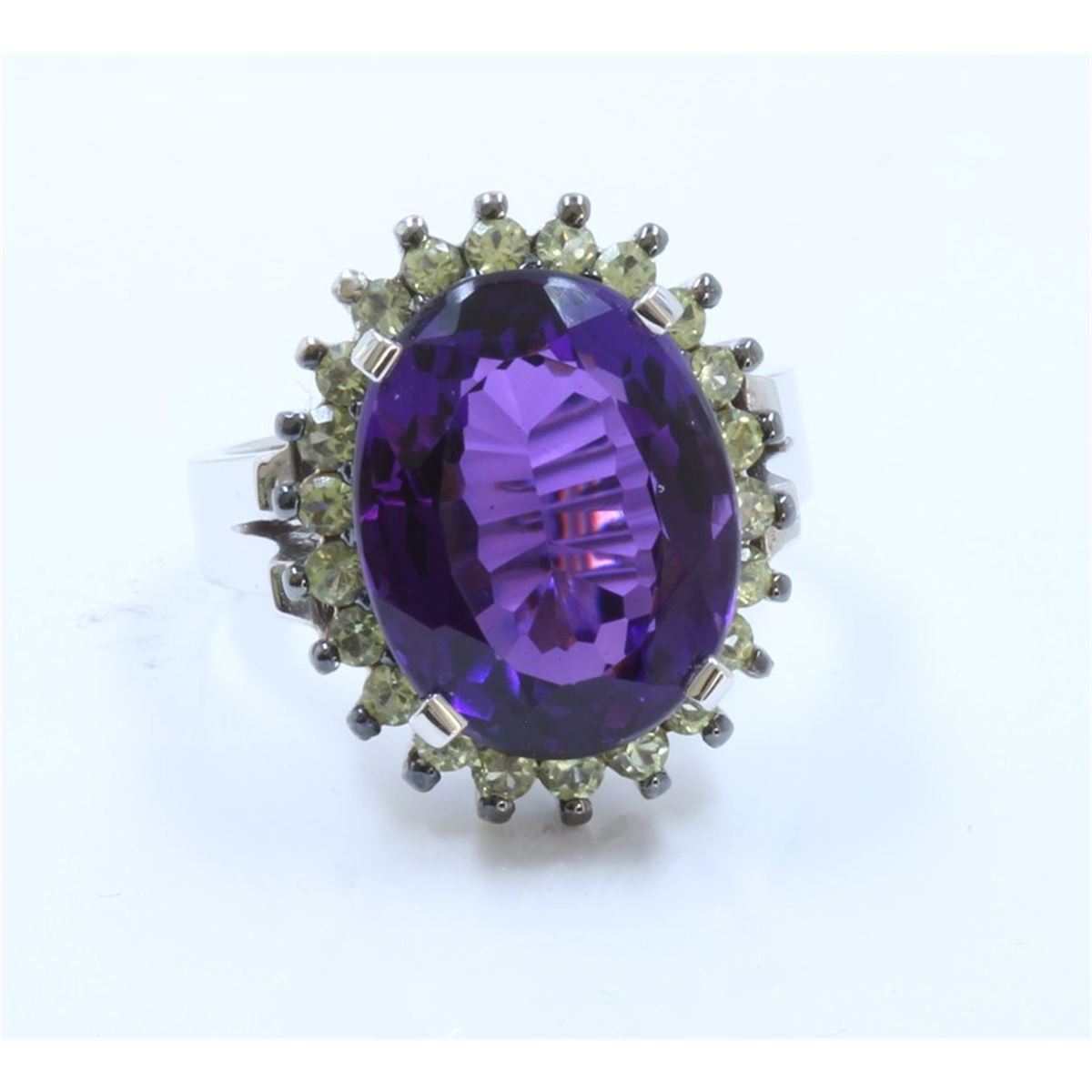 14K White Gold Amethyst Ring:10.08gPeridot:0.95ctAmethyst:10.97ct
