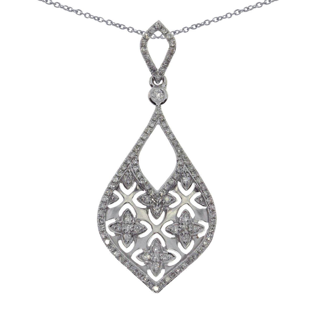 Showcasing a classic look, this 14k white gold pendant contains .36 total diamond carats in a sophisticated design. Includes 18" chain.
