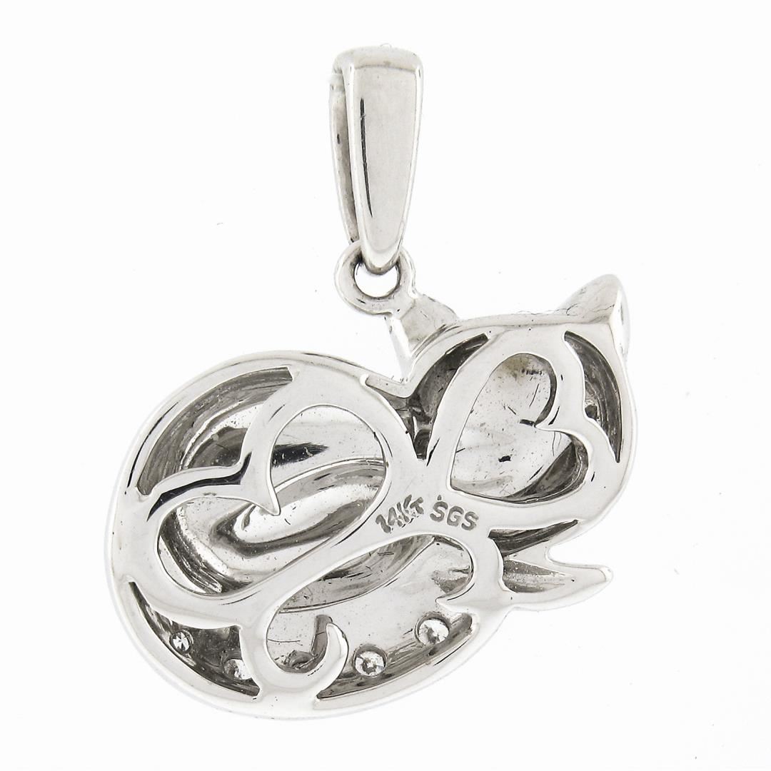 14K White Gold Cat Kitten w/ 0.05 ctw Pave Diamond Tail Collectible Charm Pendan
