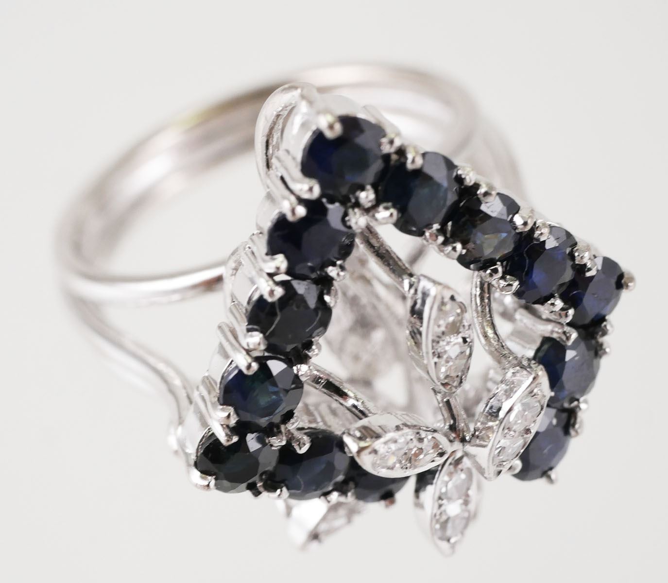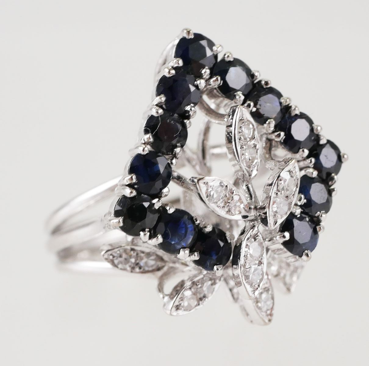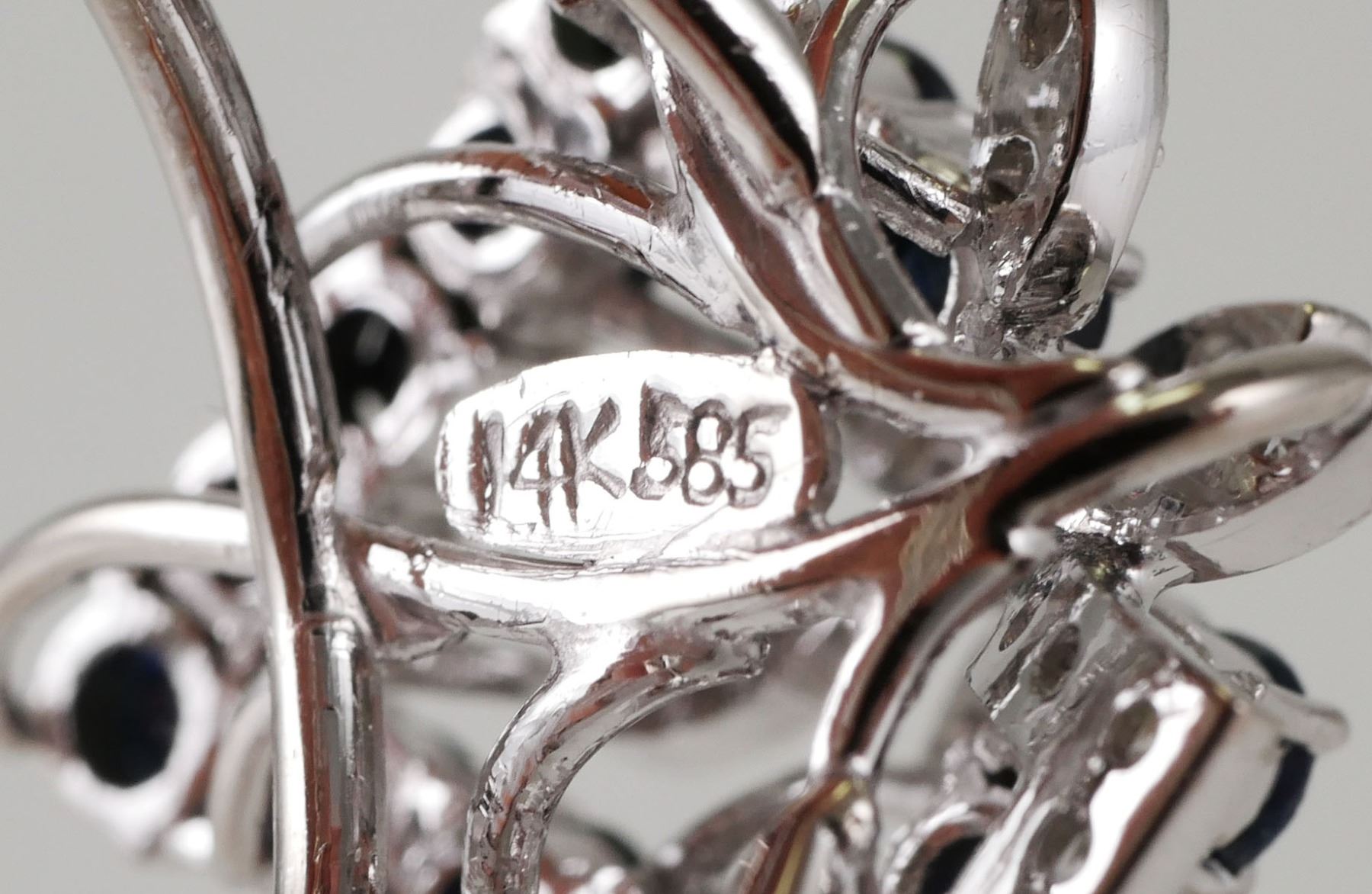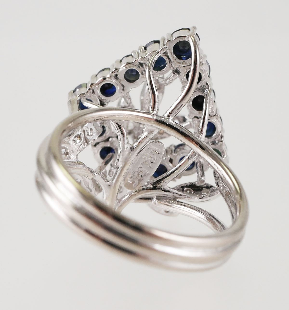 14K white gold ring with .25 total carat weight diamonds & 1.75 total carat weight of sapphires. Ring size is 6 1/2 with an overall weight of 7.9 grams. Good condition with normal wear, see photos for more details on condition. (6)