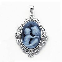 14k White Gold Diamond 13x18 Agate Cameo with Sentiment Pendant
