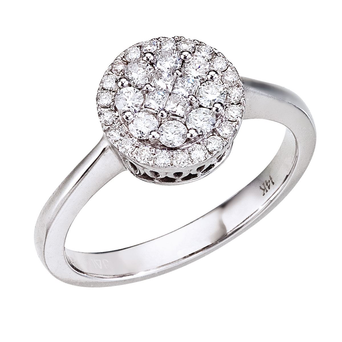 This beautiful cluster ring is sure to make a statement with .50 total ct diamonds set in 14k white gold.