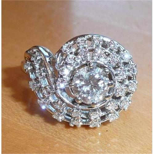 Up for auction is this gorgeous ladies diamond right hand ring. This ring is set with one center natural Round Brilliant Diamond and thirty genuine smaller Round Brilliant Diamonds. The center Round Brilliant Diamond is set in an 8-prong 14KT White Gold crown. This diamonds is extremely brilliant and sparkly, H color, SI2 clarity and weighs 1/2 carat. The side round brilliant diamonds are G color, SI clarity and weigh a total of .42 carat. This ring is solid 14 KT White Gold, weighs 6.0 grams, and because of the insert inside the shank of this ring, will fit a finger size from 5 1/2 to 6 1/2, this ring can also be sized if necessary. The ring will be accompanied by an appraisal by a GIA Certified Diamond Grader with the retail replacement value of $2,925.00. I will ship this ring promptly in a gift box. Good Luck with these great deals.