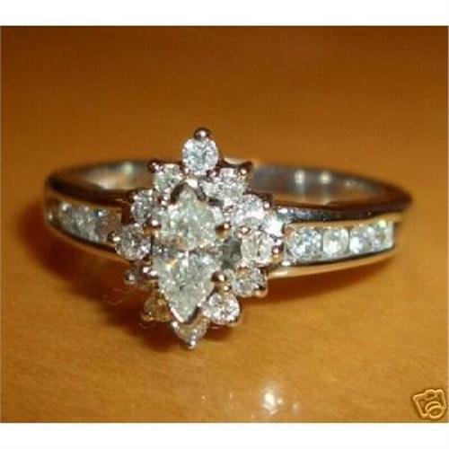 <P>Up for auction is this gorgeous ladies brilliant diamond engagement ring. This is a very beautiful ring set with of one genuine, natural Marquise center diamond. This diamond is very sparkly and brilliant (beautifully cut), H color, I1 clarity and weighs .30 carat. There are twelve Round Brilliant Diamonds set around the center Marquise Diamond (makes the diamond appear much larger than it is) and eight Round Brilliant Diamonds set along the shank of this ring. These diamonds are H color, SI/I clarity and weigh a total .35 carat. This ring is solid 14 KT White Gold, weighs 5.4 grams and is a finger size 7 1/4, which can be easily sized. This ring will be accompanied by an appraisal by a GIA Certified Diamond Grader with the retail replacement value of $1,565.00. I will ship this ring promptly in a gift box. Good Luck with these great deals.</P>