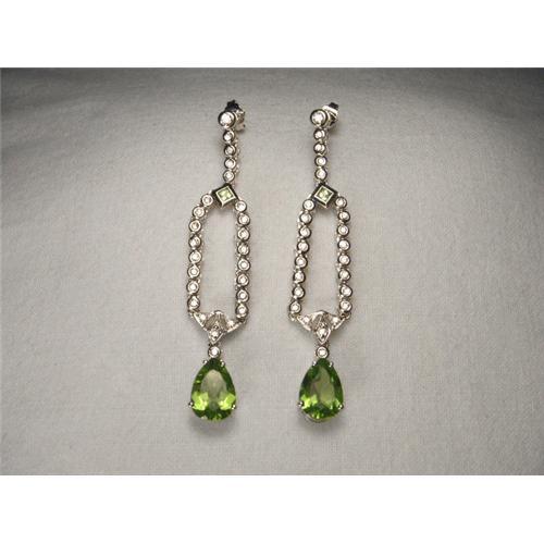 <tr><td>Title:14K White Gold Diamond Peridot Dangle Earrings</td></tr>