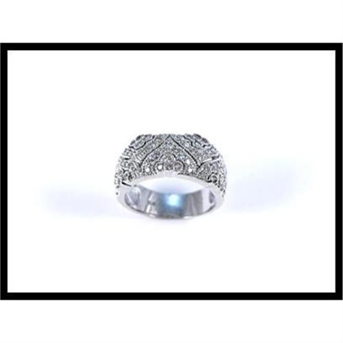 A pleasantly stunning ring that is sure to capture your attention with its intricate design. It contains 77 full cut diamonds that weight approximately 0.80 carats set in 14K white gold. The ring weighs 7.10 grams total weight and is a size 7-1/4. It measures 9 millimeters (3/8 inches) wide.