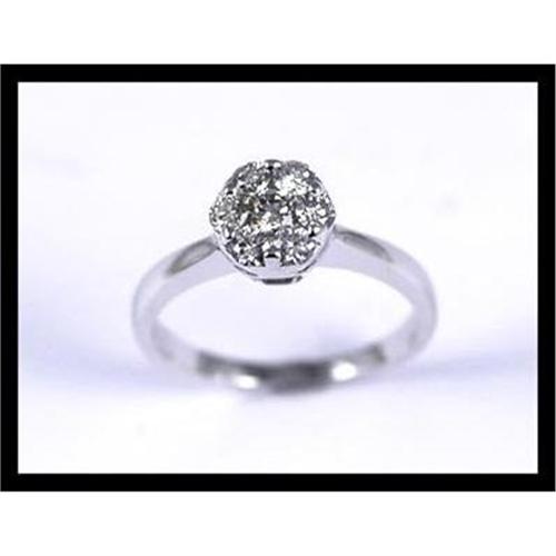 Adorable ring with 7 full cut diamonds rings that weigh approximately 0.50 carats set in 14K white gold. The size 5-1/4 ring measures 7 millimeters (9/32 inches) in diameter and weighs 3.00 grams total weight