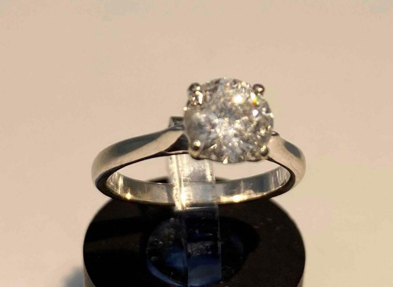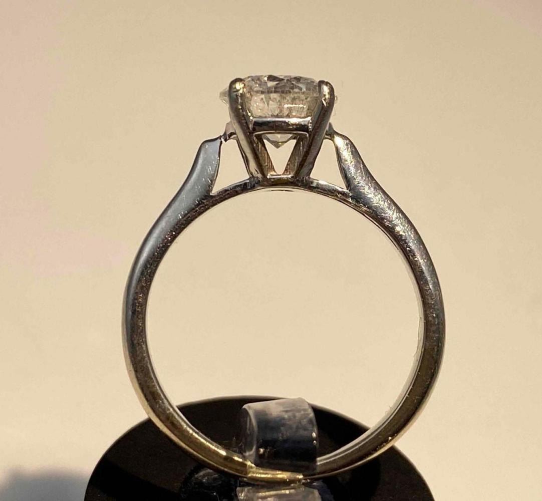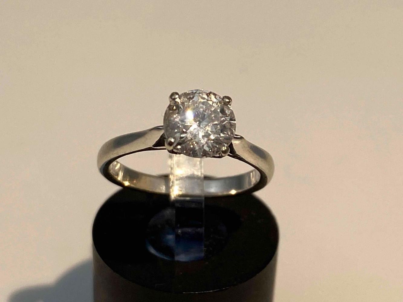 14K White Gold Diamond Solitaire Ring, 2.1g. Approximately 1ct. Unmarked, Tests As 14K. Diamond Approximately 6.41mm. Approximate Ring Size 3.5. ALL CREDIT CARDS WILL BE MANUALLY VERIFIED PRIOR TO SHIPMENT.