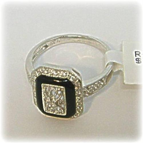 SOLID 14K WHITE GOLD sets this Genuine Diamond and Genuine Onyx Ring. Gorgeous, Sparkling Rectangular Setting is Exquisite with a Beautiful Filigree Detail. Your choice of size 7, 7.5, 8 or 8.5.