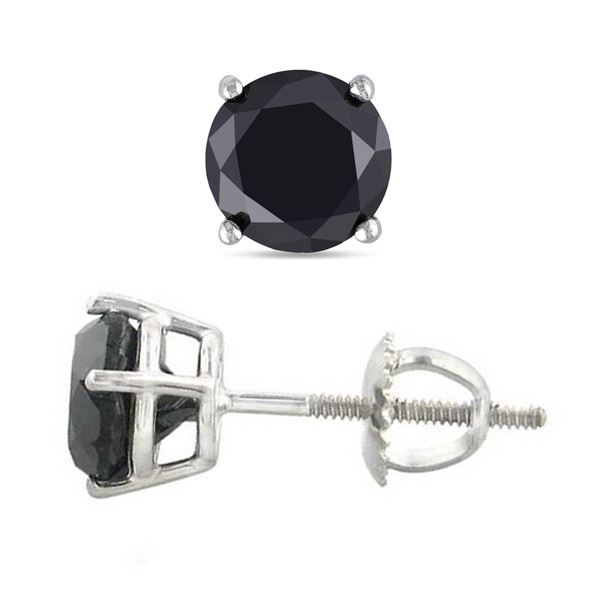 REF-119M2Y ---- WJ13340 ----- Manufacturer's Suggested Retail Price: $4580.00 ----- 14K White Gold Jewelry 2.06 ctw Black Diamond Stud Earrings ----- Diamond: 2 Round cut @ 2.06 ctw