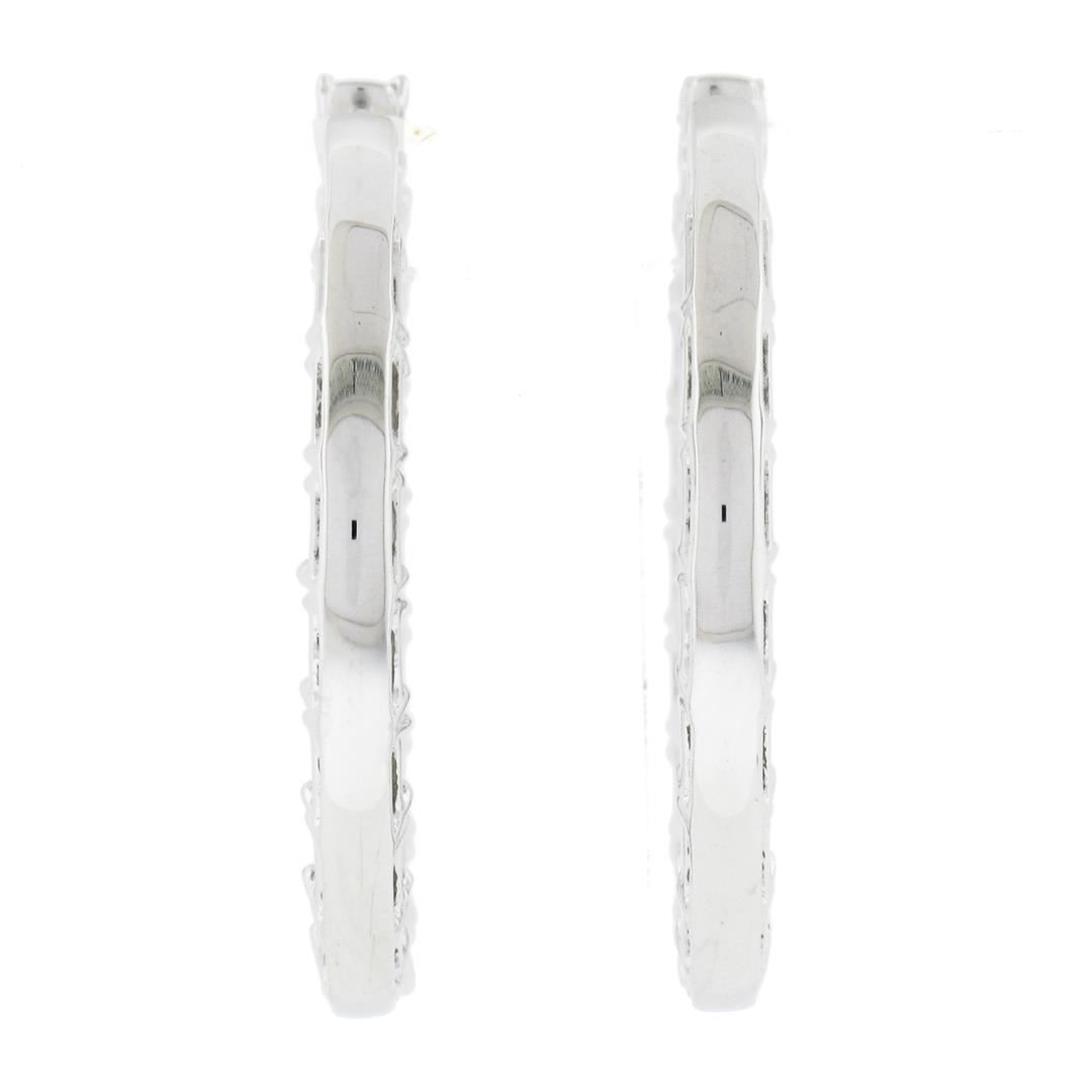 A new solid 14k white gold hoop earrings, with 36 emerald cut natural diamonds (G/H - VS1/VS2 w/ a few SI1 ; 5ctw). The earrings measure approximately 30.5x27.2mm and weigh a total of 7.19 grams.