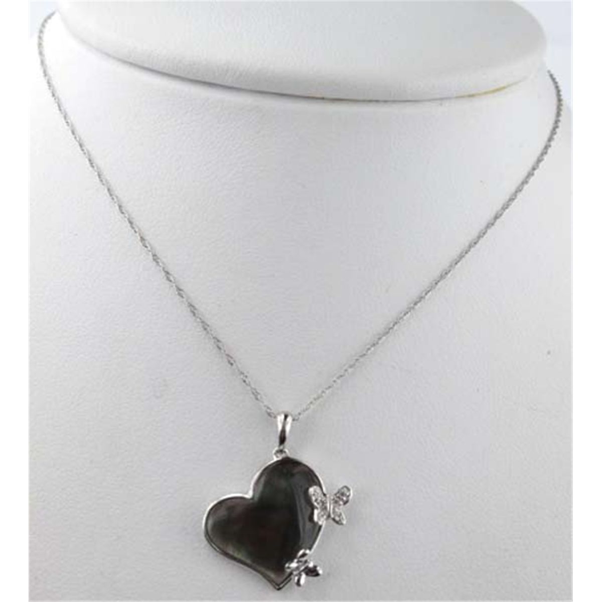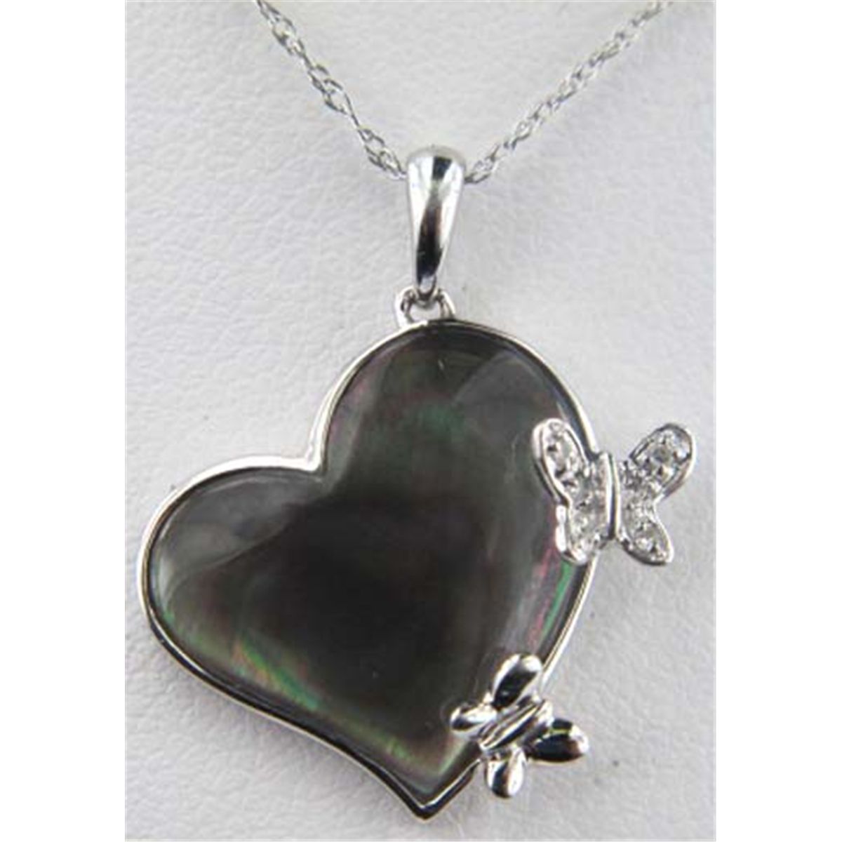 14K White Gold Mother of Pearl Diamond Necklace. The total weight of the necklace is 2.0grams. The measurement of the pendant is 16x16mm. The length of the necklace is 18".The thickness of the pendant is 3mm. The diamonds weight is approximately .20pts.