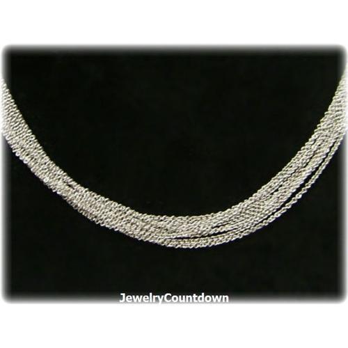 This Solid 14K White Gold Necklace is made up of 12 strands. Elegant and sexy! <BR><BR>Materials: Solid 14 Karat White Gold<BR><BR>Length: 18 Inches<BR><BR>Clasp: Lobster<BR><BR>Weight: 10 grams<BR><BR>All items are brand new and 100% Satisfaction guaranteed! <BR><BR>Arrives in a velvet lined, faux leather gift box.<BR><BR>Shipping Charges within the USA: $6 for the first item and $3 for each additional item; Within Canada $15.00 for the first item and $3 for each additional item; Within Europe or Australia: $38 for the first item and $6 for each additional item.<BR><BR>Please visit our EBAY Store for more great finds! Paste this link into your browser: http://stores.ebay.com/New-Jewelry-Diamond-Gold-Silver-Gem<BR><BR><BR>Insurance is included in these charges<BR><B>We ONLY ship to the USA, Canada, Australia and Europe.