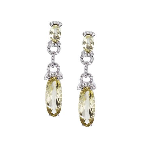 14k White Gold Oval Dangle Lemon Quartz And Diamond Earrings