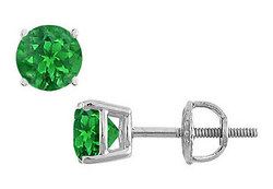 A pair of perfectly matched round emeralds is set in a rich 14K white gold prong mounting. These gemstone stud earrings have a total weight (TGW) of 1.00 carat and are available in either screw-back or push-back.