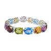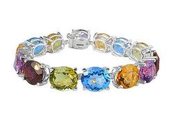 This classy and versatile bracelet surrounded on your wrist with mutiple colors of semi-precious stones oval faceted cut in prong-setting. Each stone size consists of 10X8 MM and the bracelet is 7 inches long with a lobster clasp. The entire bracelet is made in 14K white gold and has a total gem weight (TGW) of 50.00 carats.