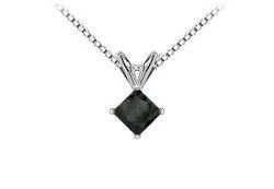 A square shape black onyx is delicately suspended in a rich 14K white gold 4-prong mounting. This black diamond solitaire pendant has a total gem weight (TGW) of 3.00 carats and comes with a standard 16 inches 14K gold chain.