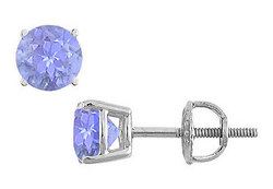 A pair of perfectly matched round tanzanites is set in a rich 14K white gold prong mounting. These gemstone stud earrings have a total weight (TGW) of 1.50 carats and are available in either screw-back or push-back.