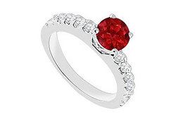 Center set atop is a bigger round ruby & is accentuated by smaller round diamonds on both side of the band. This admirable engagement ring is made in 14K white gold & has a total diamond weight (TGW) of 1.00 carat and also available matching complete sets of engagement ring with wedding band model no.JS358ABW14DR & single wedding band model no.W358BW14D.